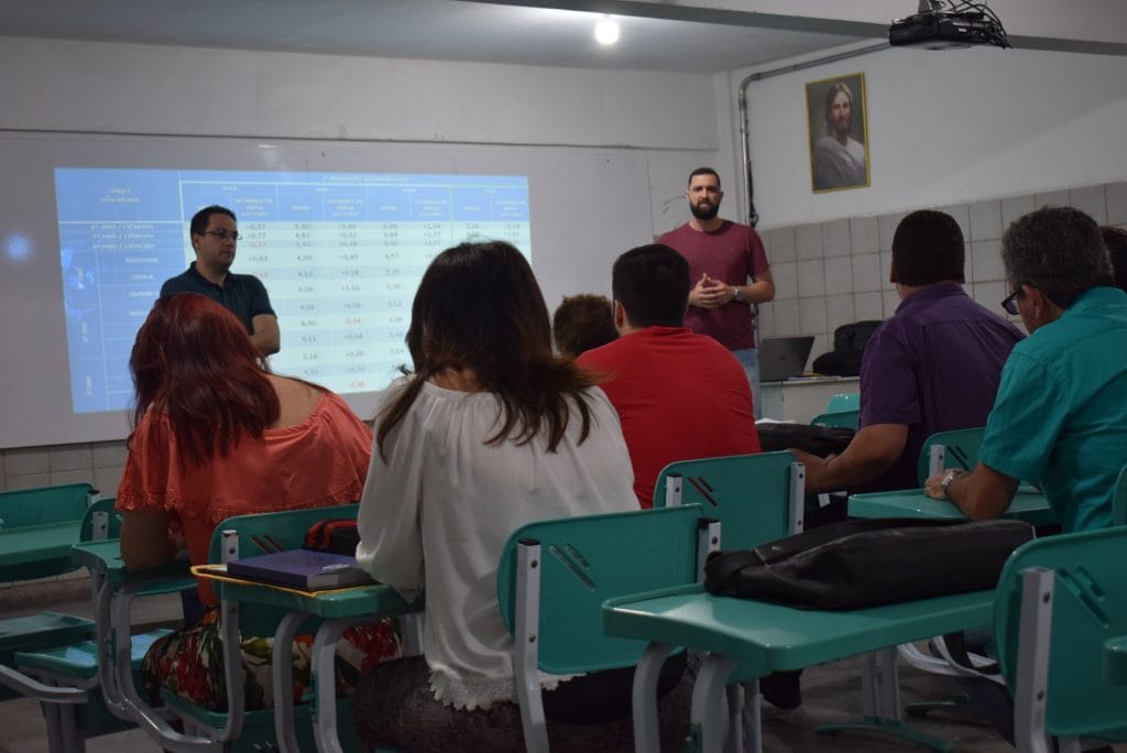 Enquanto os alunos estão de férias, a equipe técnico-pegagógica do Colégio Diocesano de Caruaru está reunida para avaliar o ano que passou e traçar metas para o que se inicia