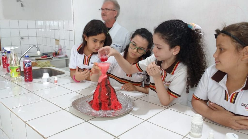 Esta semana, os alunos das turmas dos 4º anos do Ensino Fundamental realizaram uma simulação da erupção de um vulcão no laboratório de ciências do Colégio Diocesano. O experimento fez parte das aulas de Ciências, sobre o estudo das camadas da terra. Os alunos confeccionaram os vulcões, utilizando materiais recicláveis, como garrafa pet e jornal, além do gesso […]