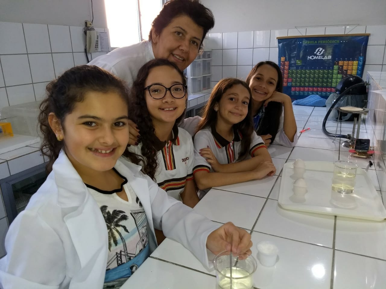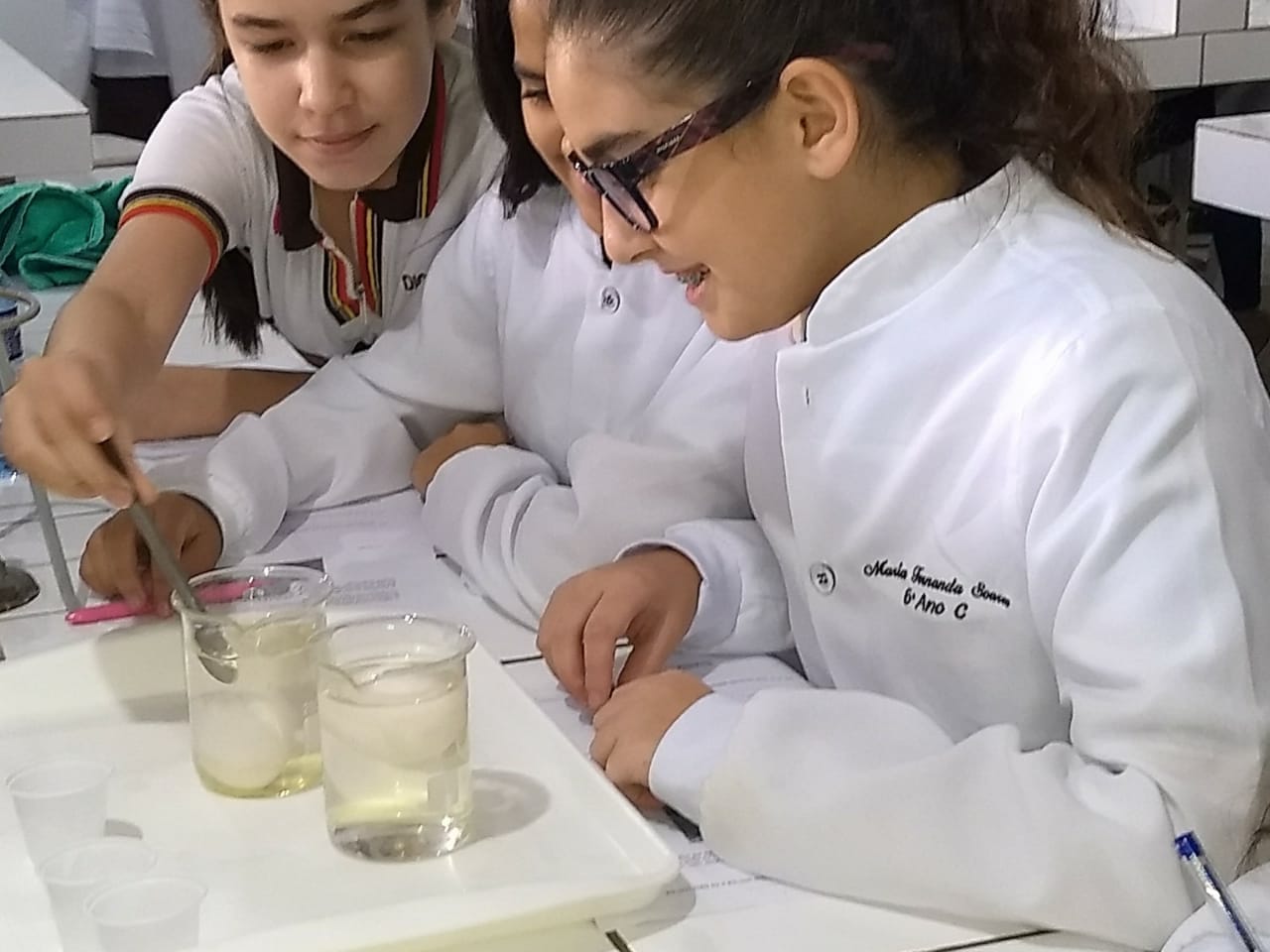 Um experimento sobre o Empuxo da Água impressionou os estudantes do 6º ano, durante a aula de Biologia da professora Adriana Pereira, realizada no laboratório de Ciências do colégio.