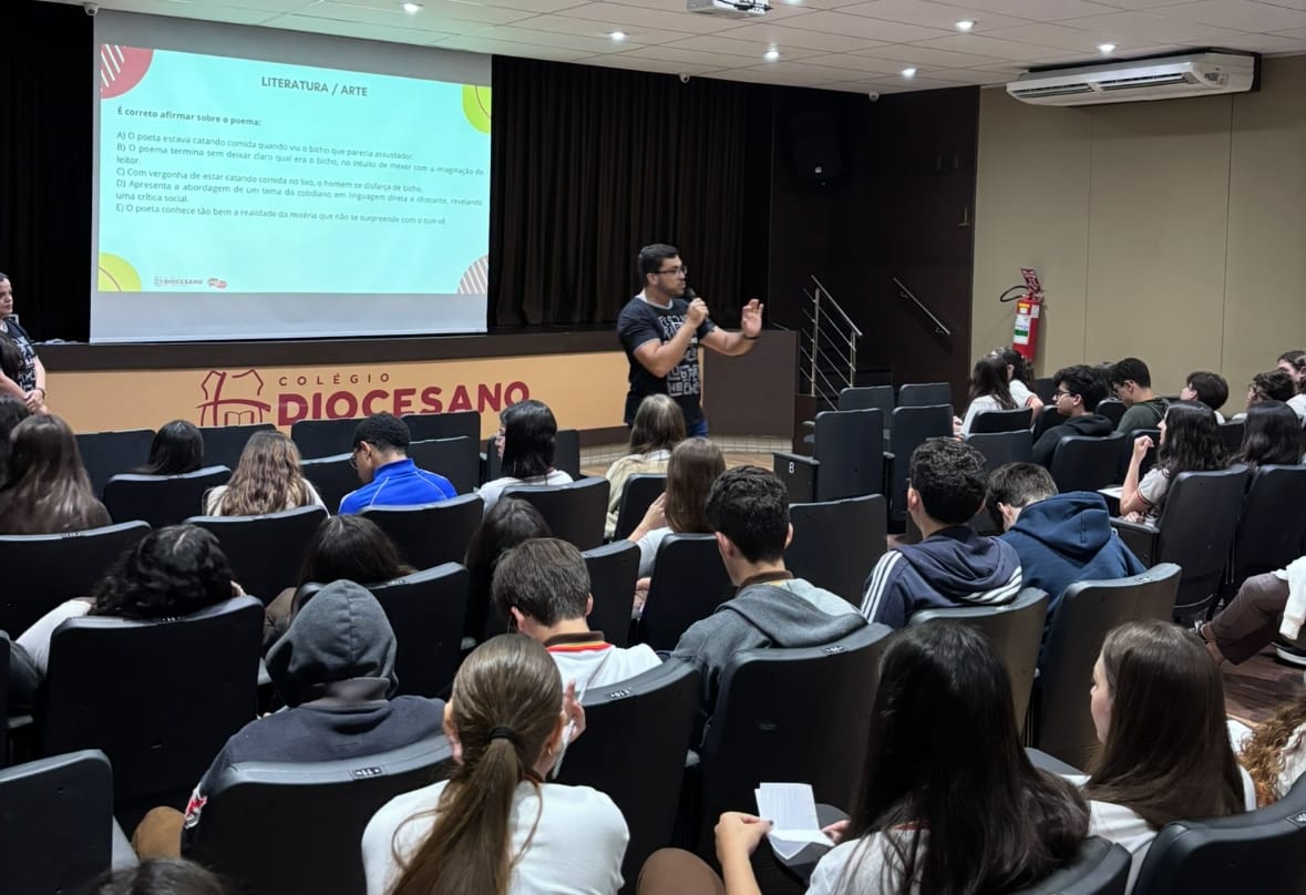 Os alunos do 9º ano do Ensino Fundamental participaram, nesta semana, do Aulão Pré-Médio, promovido pelo Colégio Diocesano de Caruaru, em uma iniciativa voltada à transição para o Ensino Médio. O encontro teve como objetivo aproximar os estudantes da nova etapa escolar, apresentando os professores e a metodologia de ensino que marca o trabalho do colégio nessa fase decisiva da vida acadêmica.
