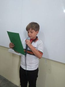 Esta semana, foi a vez das turmas dos 3º anos que trabalharam a poesia como meio de melhorar a linguagem oral. Inicialmente, os estudantes tiveram aula sobre a poesia, como são pensados e escritos os versos e as rimas. De forma espontânea, os estudantes leem em voz alta diante dos demais alunos. Eles conheceram poemas de autores como Cecília Meireles, Mario Quintana, Carlos Drummond de Andrade e Vinicius de Moraes, todos adaptados para faixa etária dos alunos.