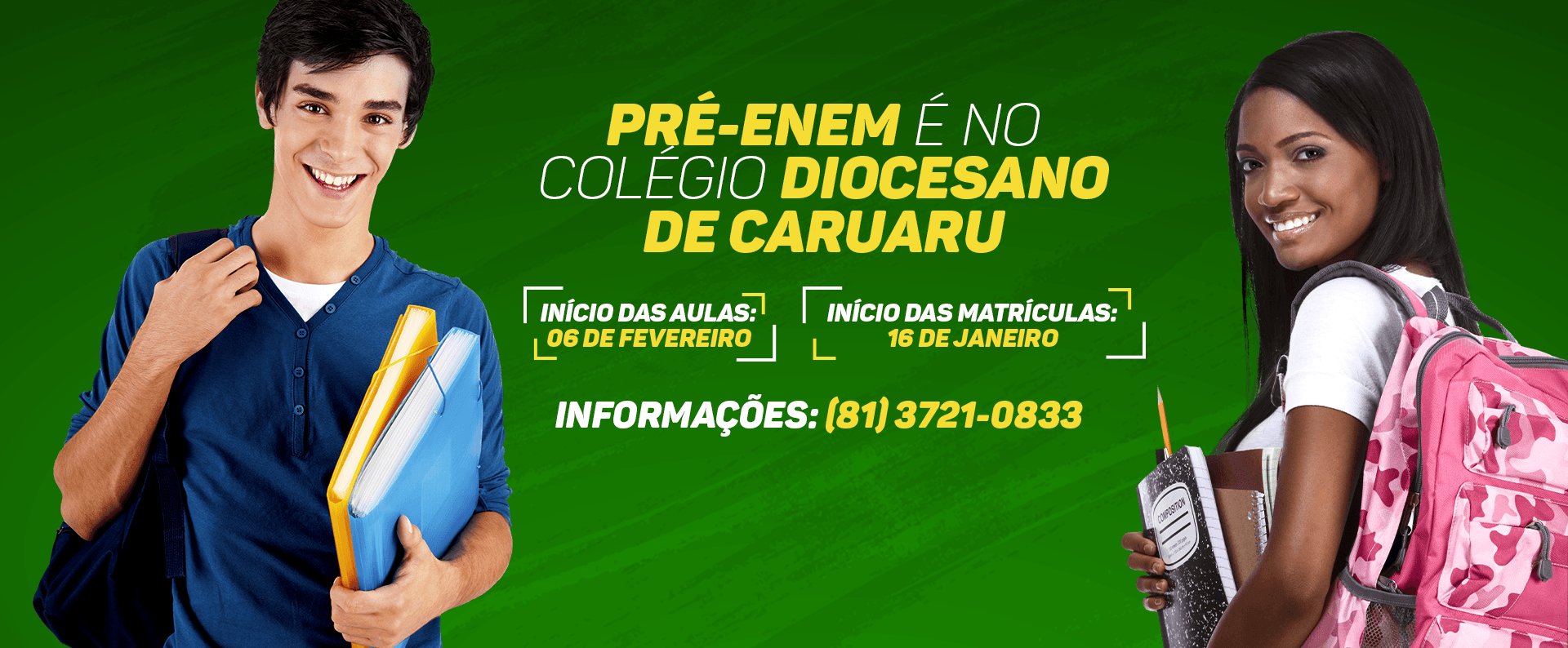 Estão abertas as inscrições para o cursinho pré-vestibular do Colégio Diocesano de Caruaru. As matrículas podem ser feitas na secretaria da escola. As aulas terão início no dia 6 de fevereiro.
