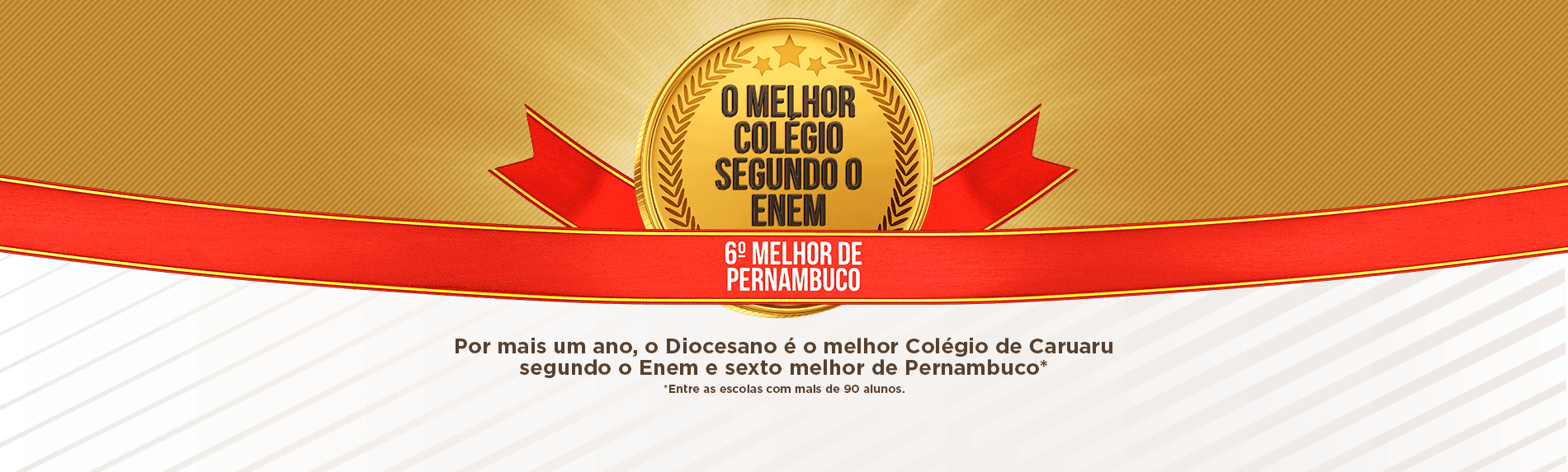 Por mais um ano consecutivo, o Colégio Diocesano de Caruaru conquistou o primeiro lugar em Caruaru na média geral do Exame Nacional do Ensino Médio (Enem). Em Pernambuco, o Diocesano também ficou em posição de destaque, alcançando a sexta maior média no Estado, considerando as escolas de grande porte (aquelas com mais de 90 alunos participando da prova).