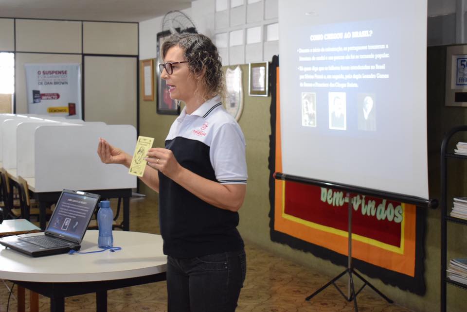 A atividade mais recente trouxe para sala de aula a parlenda ‘Hoje é Domingo’. A professora Amanda Ferreira trabalhou rima, musicalidade poética, verso e interpretação no decorrer do projeto.